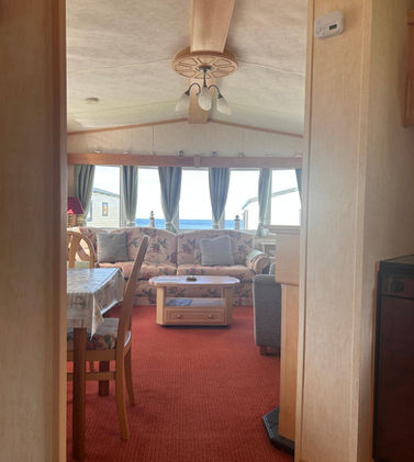 Two bedroom static caravan. Master bedroom with a double size bed, en suite & storage.The second bedroom is a twin room. Main WC toilet sink and twin shower. Kitchen has a fully equipped kitchen with a large fridge freezer & dining area to enjoy your meals. The living area has a sofa area with bay windows to look out to sea and a TV. This van has central heating & is dog friendly. Van 12 has a table and chairs. to sit outside to relax and unwind.